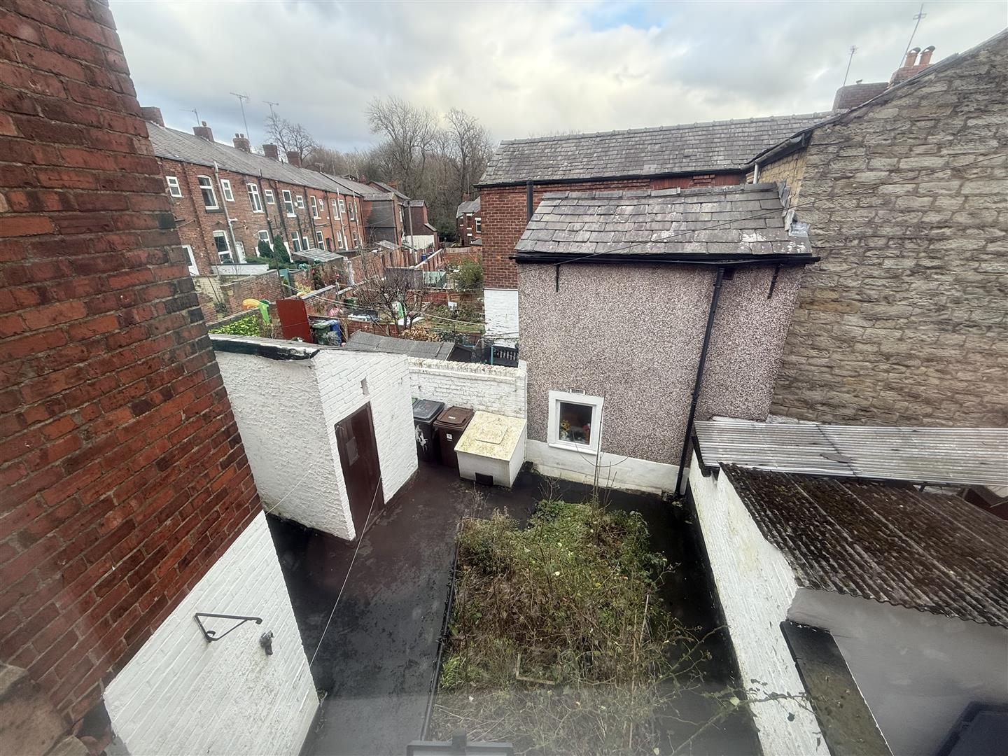 • Back garden with storage outhouse