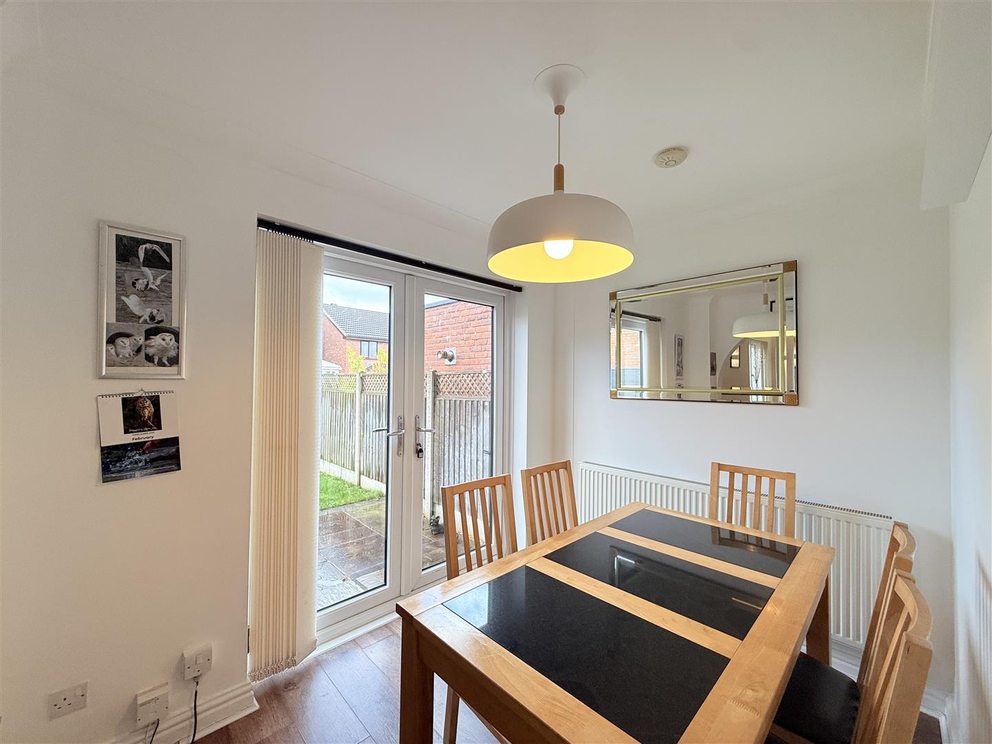 The accommodation briefly comprises an entrance hall leading to a convenient downstairs WC, a comfortable lounge which opens seamlessly into the dining room, and French doors that provide access to and views over the rear garden, creating an ideal space for both everyday living and entertaining. The kitchen is also located on the ground floor and is well positioned to serve the dining area.