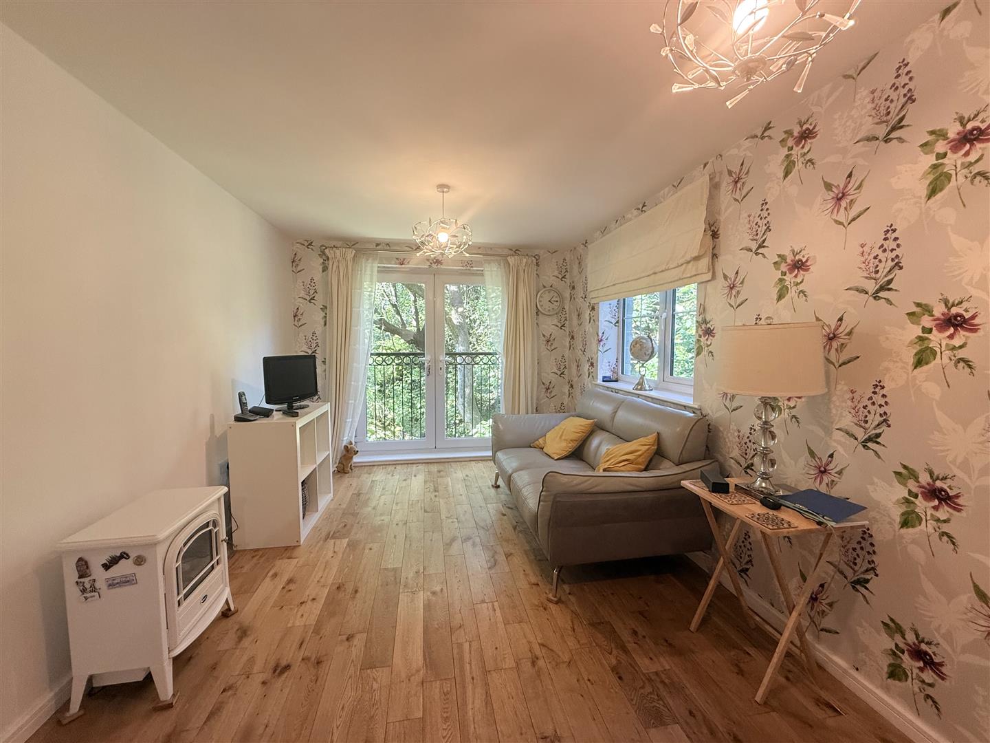 The heart of the property is the inviting open-plan living and dining area, enhanced by a charming Juliette balcony that fills the room with natural light and provides a perfect spot to enjoy the fresh air and leafy outlook. The contemporary fitted kitchen blends seamlessly into the space, creating a sociable hub that is both stylish and practical. Ttwo well-proportioned bedrooms, each offering plenty of room for rest and relaxation, with flexibility for use as a home office or guest room if desired and a four-piece bathroom featuring a separate shower and bath complete the accommodation.