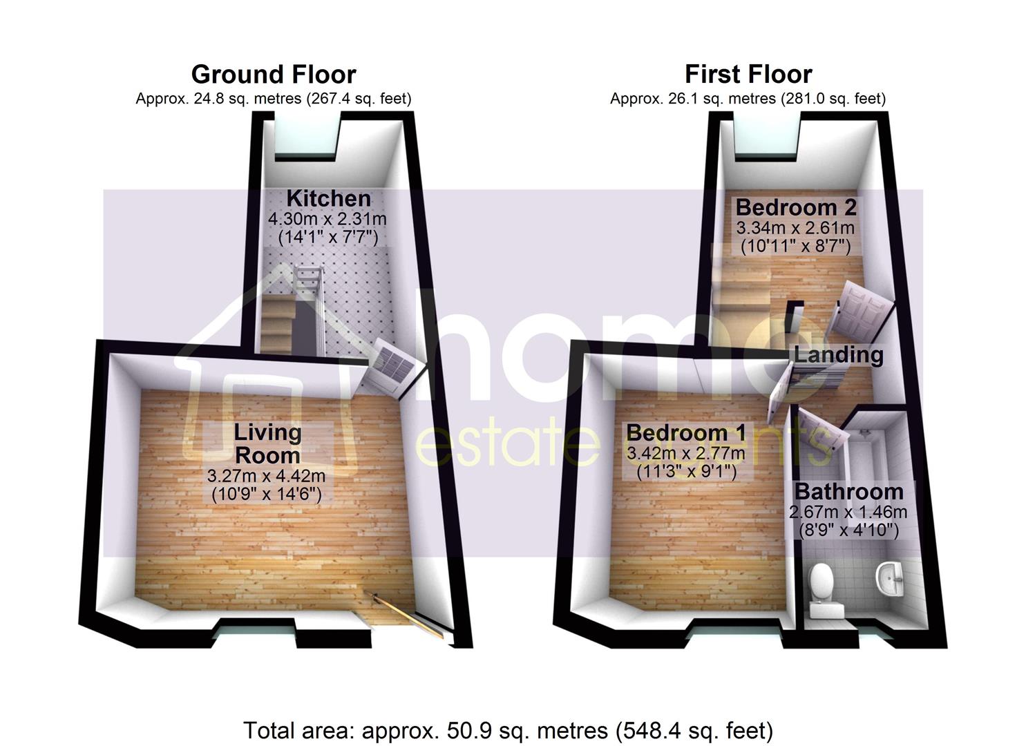 Home Estate Agents believe all the particulars given to be accurate. They have not tested or inspected any equipment, apparatus, fixtures or fittings and cannot, therefore, offer any proof or confirmation as to their condition or fitness for purpose thereof. The purchaser is advised to obtain the necessary verification from the solicitor or the surveyor. All measurements given are approximate and for guide purposes only and should not be relied upon as accurate for the purpose of buying fixtures, floor-coverings, etc. The buyer should satisfy him/her self of all measurements prior to purchase.
