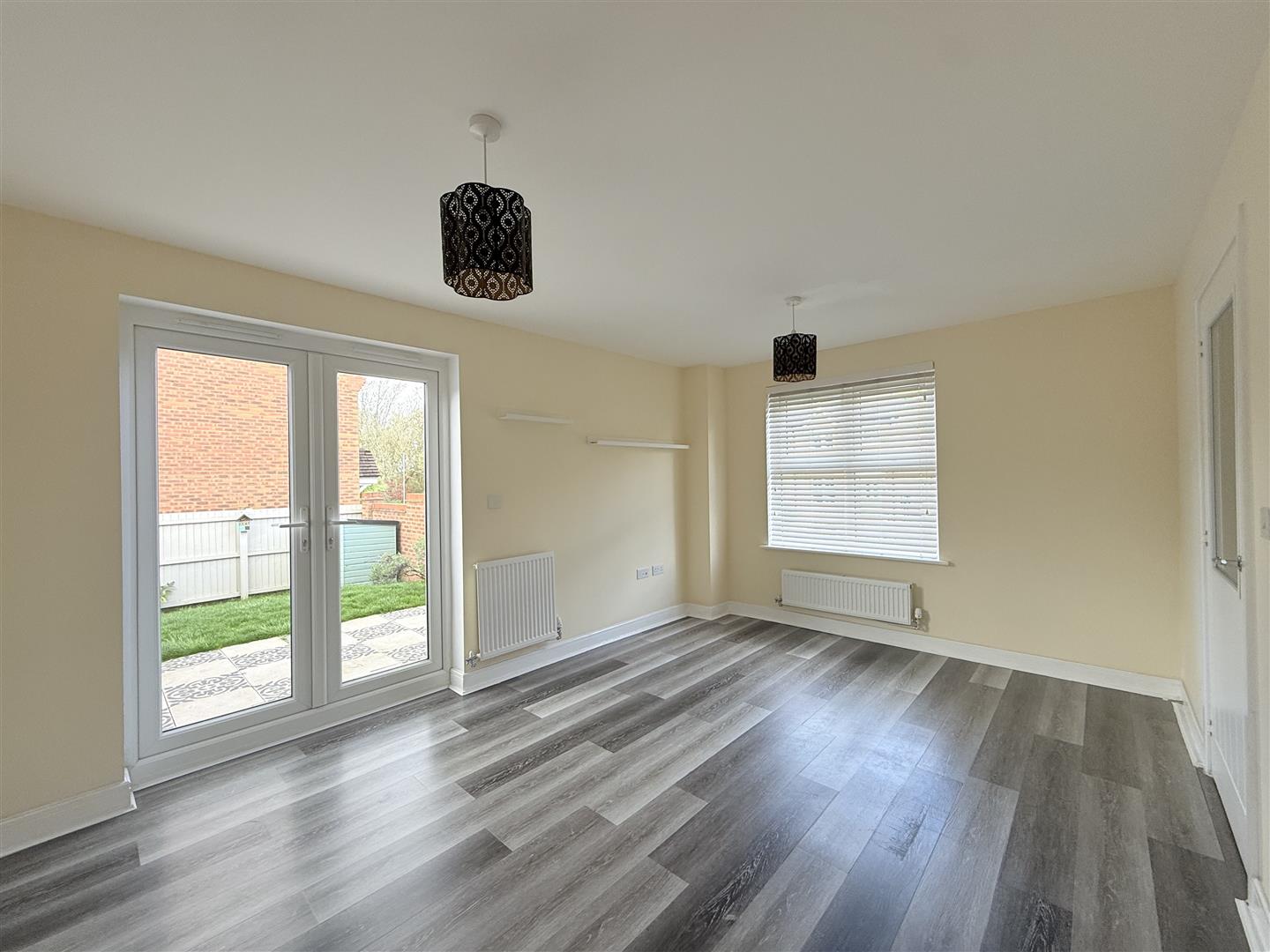 Double glazed window to front, two radiators, double glazed French door leading out to side garden.