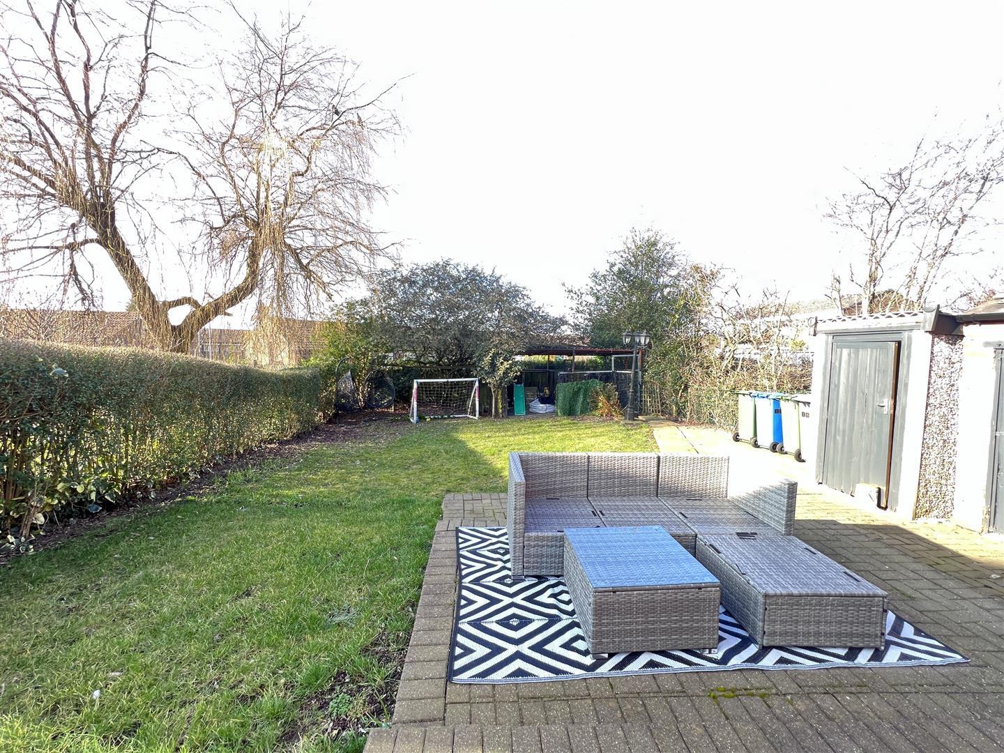 Garden fronted with wrought iron gate and fencing. Steps leading down to basement. Double wrought iron gates with block paved driveway to side leading to detached garage. Garden to rear with lawned and paved seating area. Brick brick built outbuildings for storage.