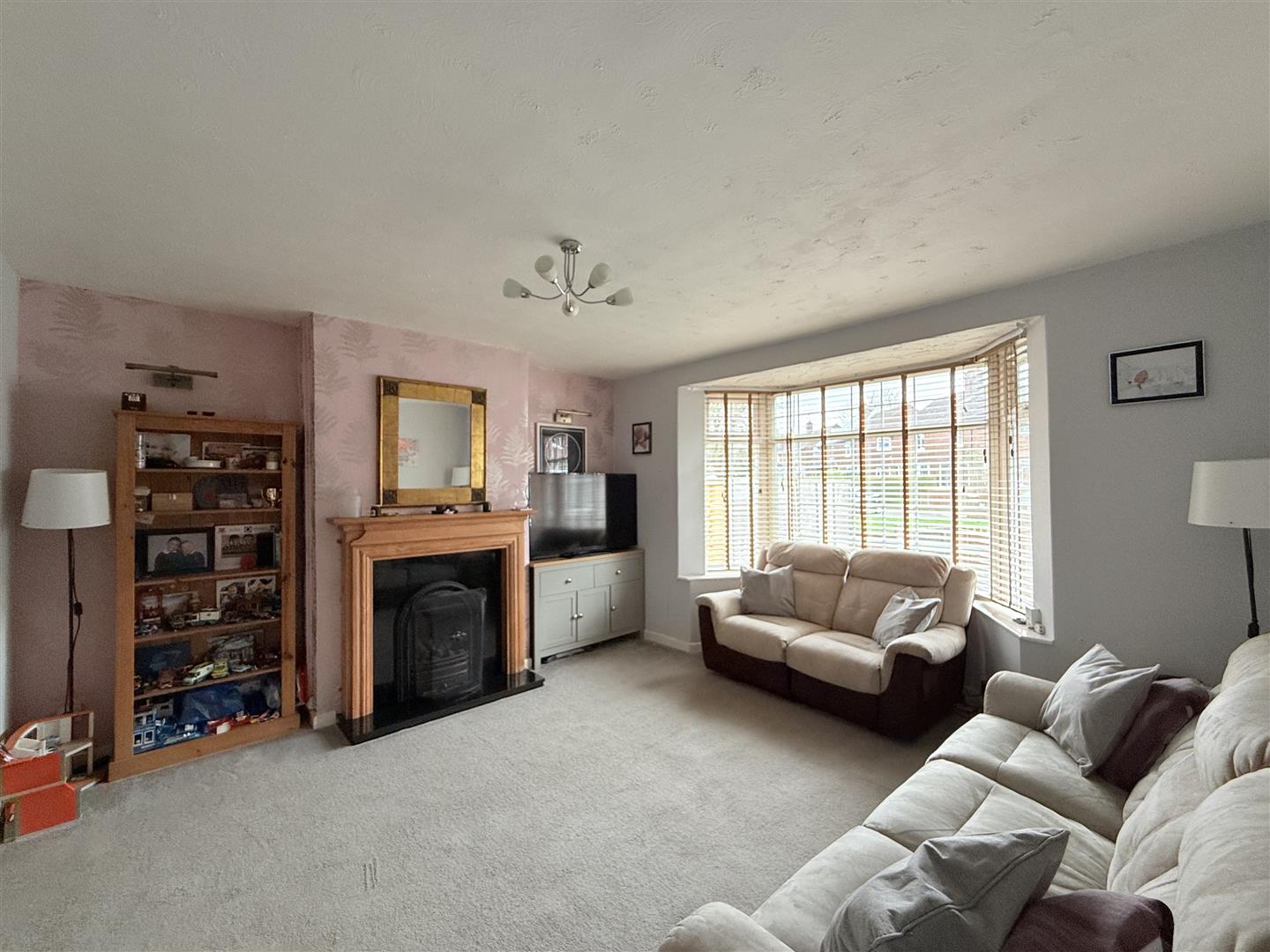 Double glazed bay window to front, feature fireplace, radiator, open plan to: