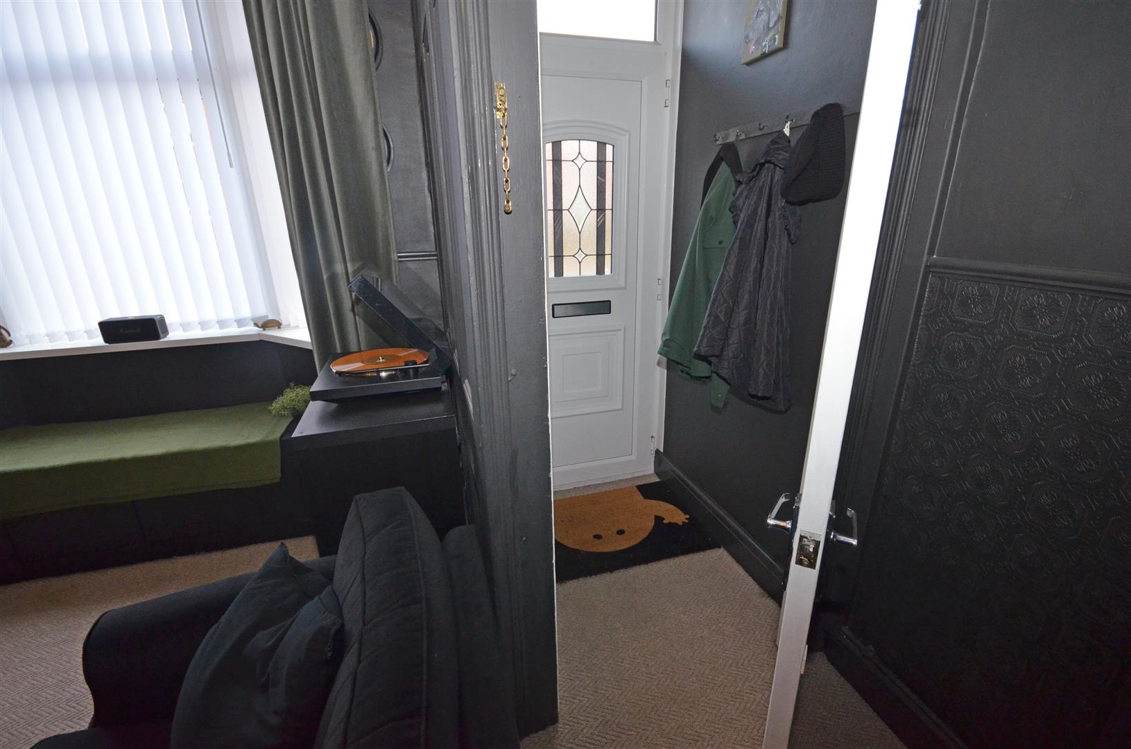 Upvc double glazed front door and partially glazed door to the lounge.