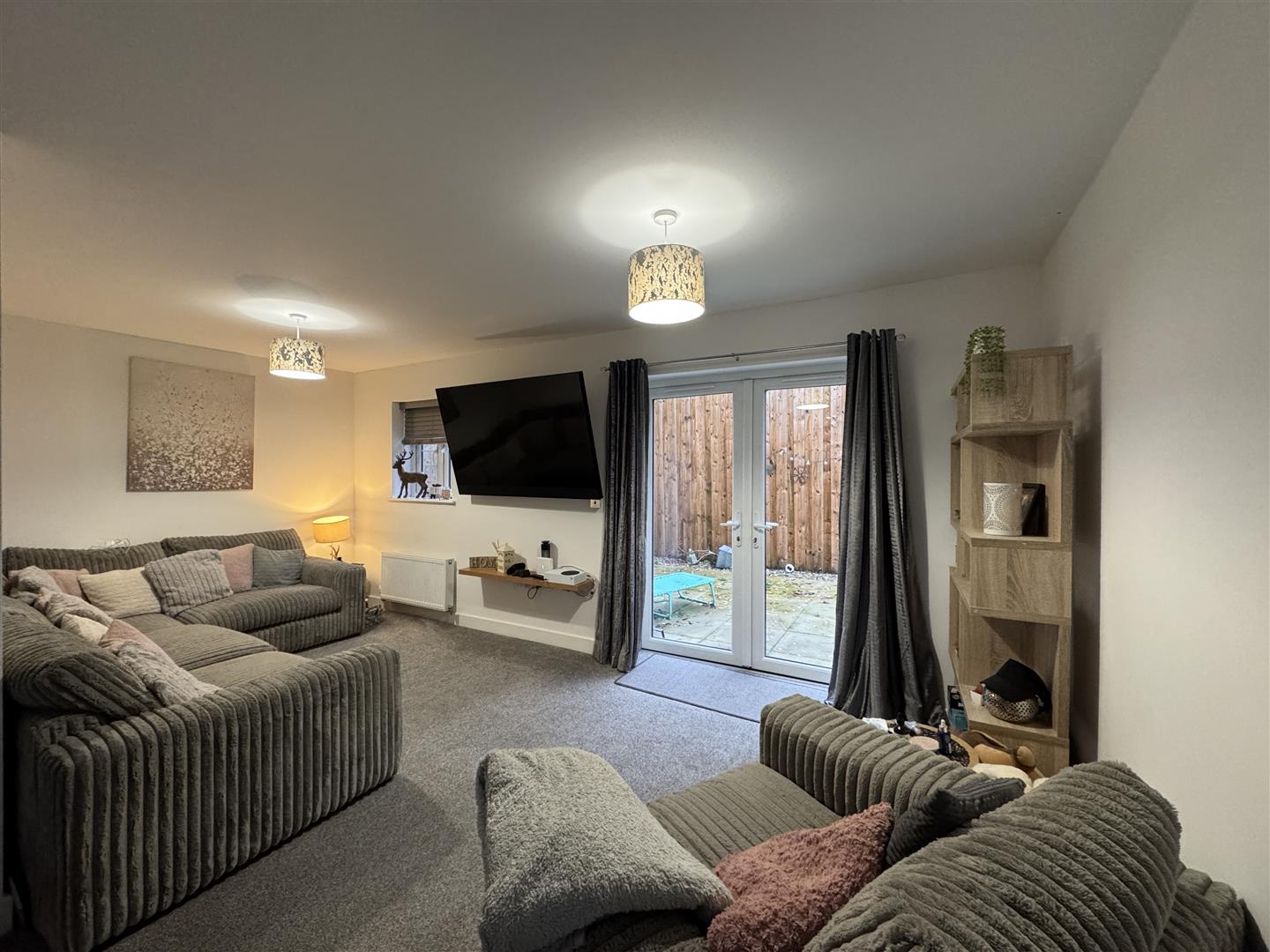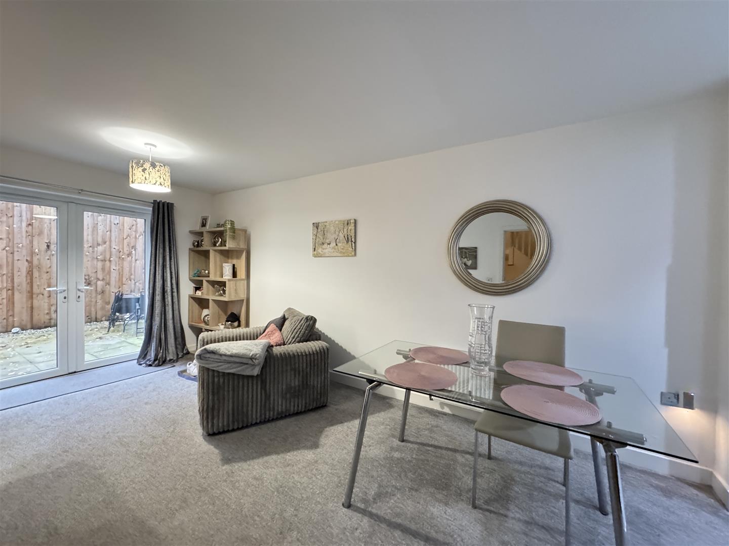 The accommodation is arranged to provide flexible family living and comprises an entrance hall, a spacious utility room, and a modern downstairs shower room with a stylish walk-in shower. There is also convenient internal access to the integral garage from the hallway. To the first floor is a bright and spacious open-plan lounge and dining area with French doors opening out onto the rear garden, creating a light and airy social space ideal for both relaxation and entertaining. The lounge opens into a contemporary fitted kitchen with a range of modern units and ample worktop space. There is also a versatile bedroom on this level, which could alternatively be used as a home office, guest room, or playroom.