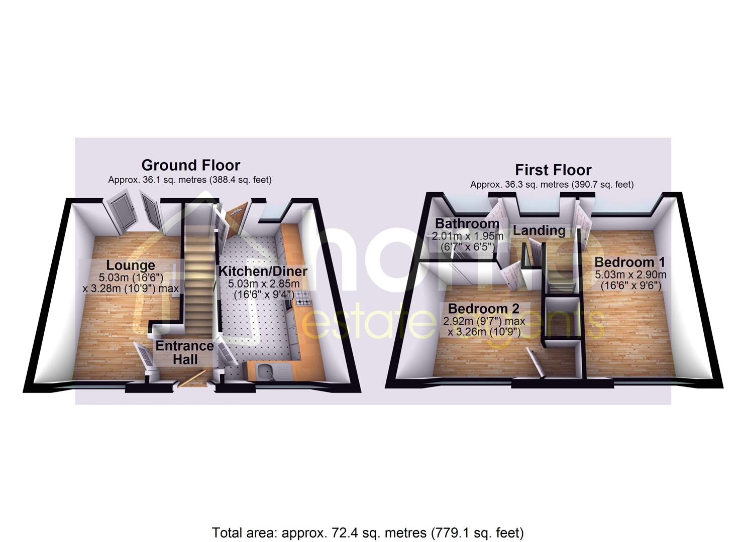 Internally, the property is well proportioned and tastefully maintained, with the ground floor comprising a bright and generous lounge and a modern kitchen/diner—both extending the full length of the property. The lounge benefits from French doors opening out to the rear garden, creating a seamless indoor-outdoor flow that’s perfect for entertaining or relaxing. The kitchen/diner offers ample worktop and cupboard space, ideal for day-to-day family living or hosting guests.