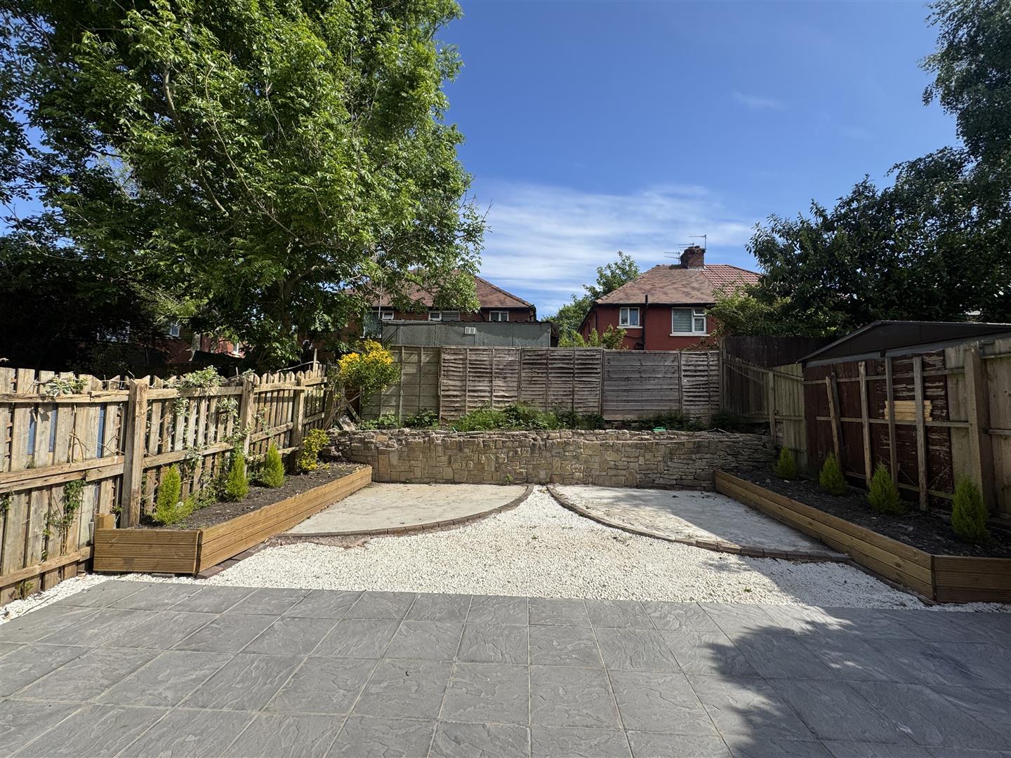 Externally, the property enjoys a lawned garden to the front, offering kerb appeal and a welcoming approach. To the rear, there is an enclosed, low-maintenance garden that features a paved patio area ideal for entertaining, a gravelled section, and raised planters that add charm and colour to the space.