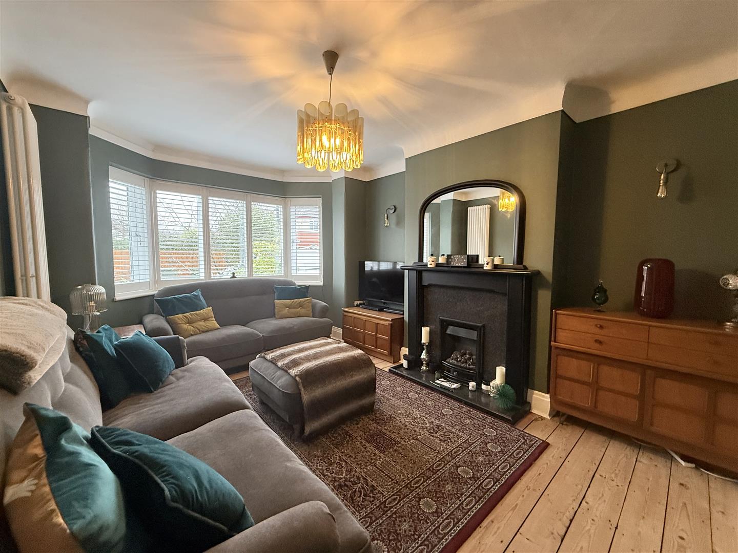 Bay window to front double glazed with made to measure shutter blinds