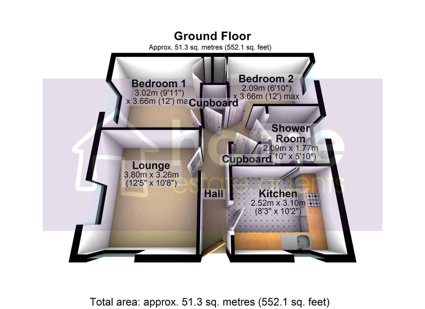 3.80m x 3.26m (12'6" x 10'8")
