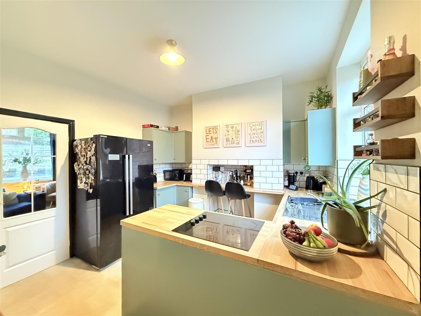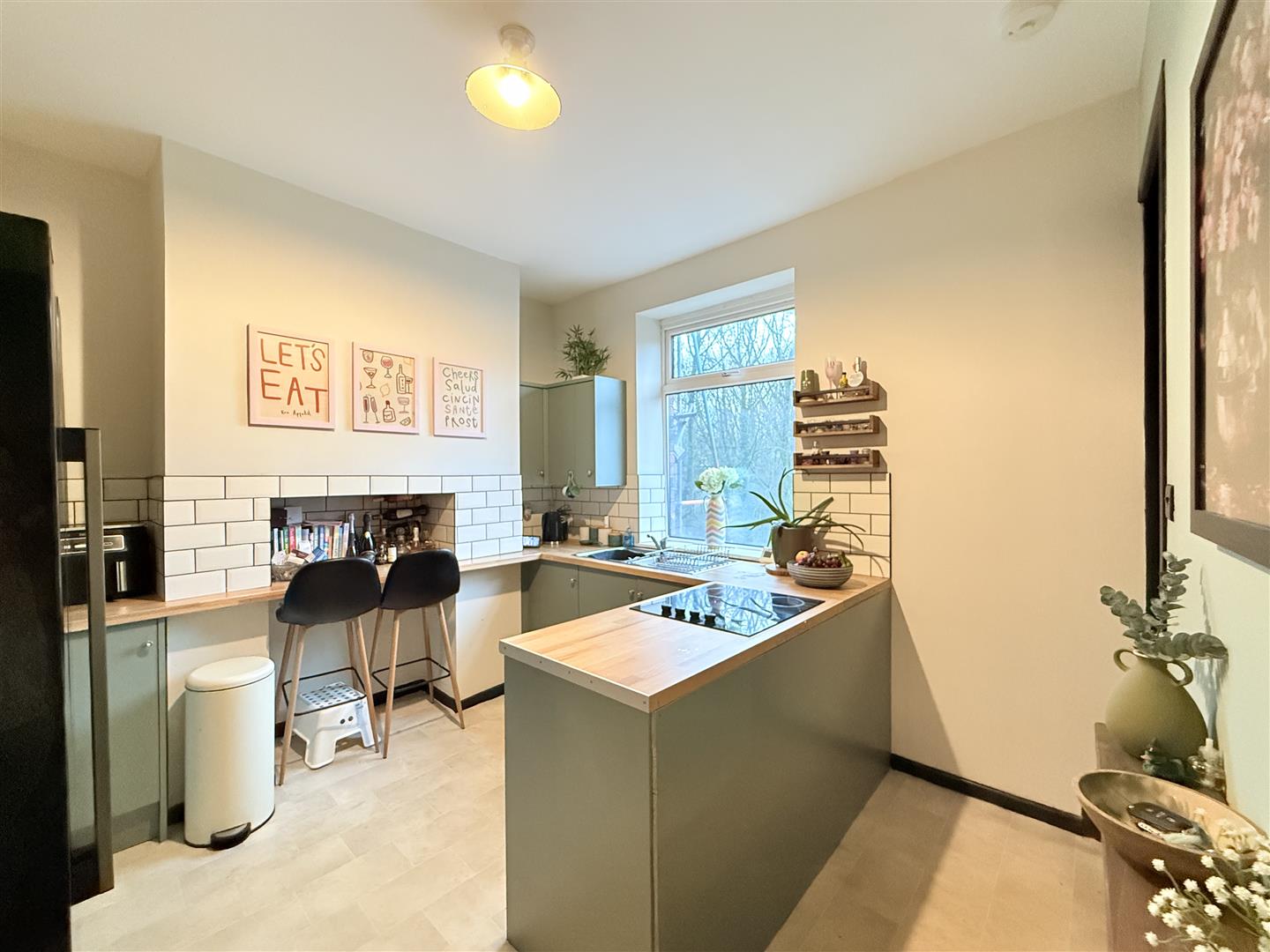 Window to rear double glazed. stairs leading to first floor. Stunning new kitchen with base and top cupboards. Electric oven