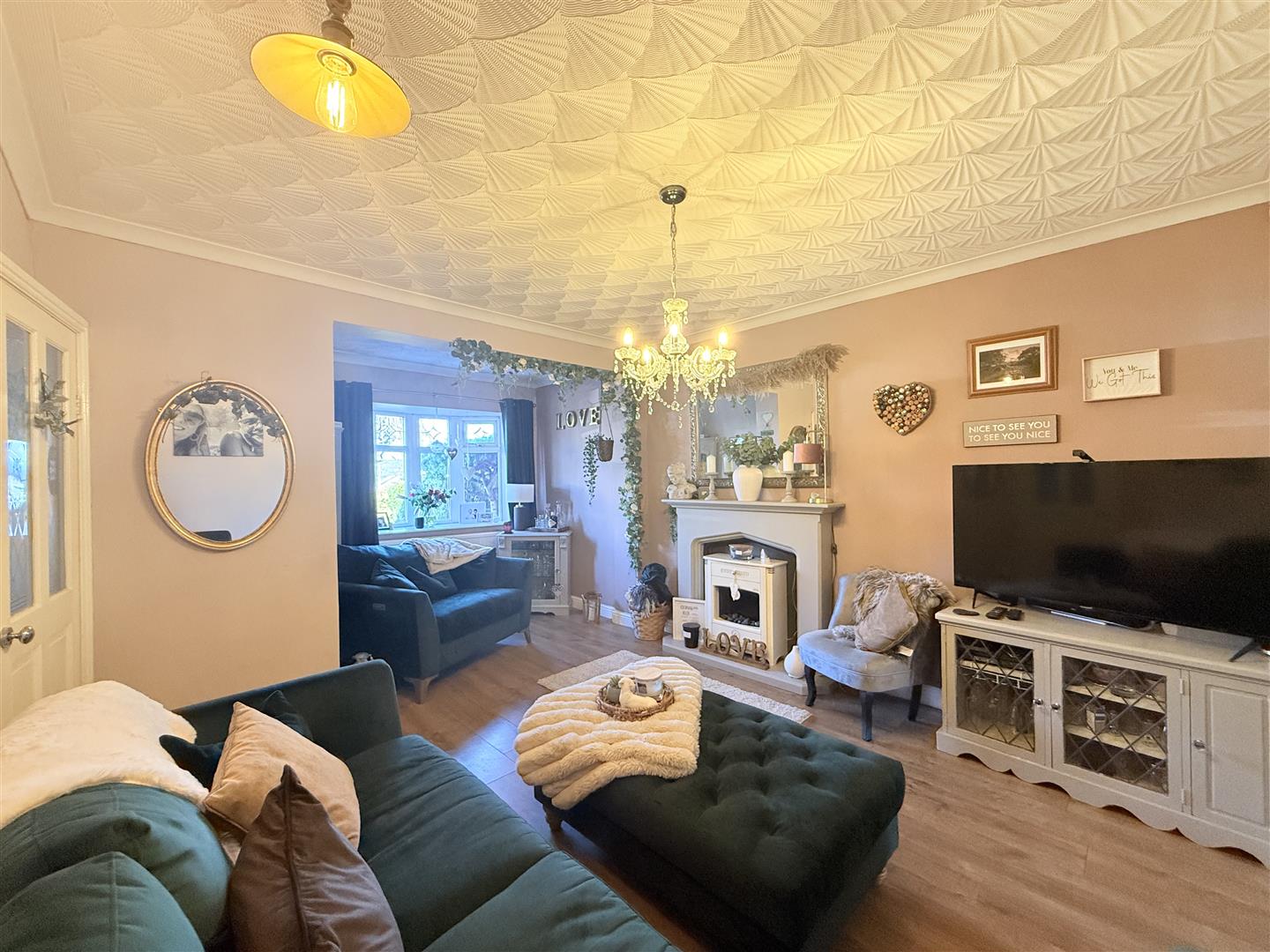 Double glazed bay window to front, electric fire, radiator, door leading into kitchen/diner
