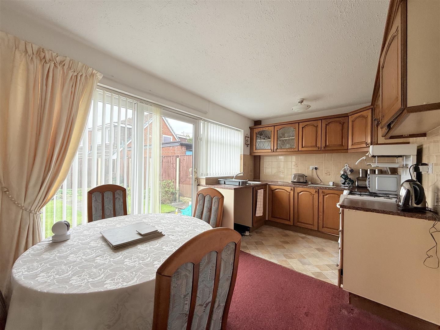 Fitted with a matching range of base and eye level units with worktop space over, inset sink and drainer with mixer tap, tiled splashbacks, plumbing for washing machine, space for fridge/freezer, space for cooker, door to storage cupboard, double glazed window to rear, double glazed sliding door opening out to rear garden.