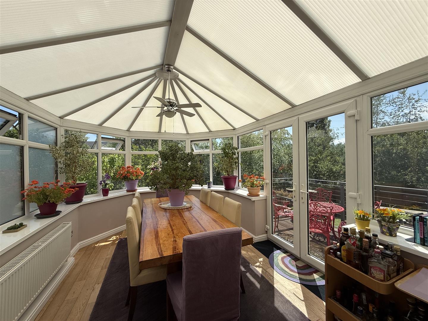 The lower ground floor is the true heart of the home, featuring a spacious and well-equipped kitchen and dining area, currently used as a snug is ideal for both everyday living and entertaining. A log-burning stove adds warmth and character to this space, while the adjoining conservatory and outside breakfast deck brings in an abundance of natural light and offers delightful views over the garden. This level also includes a separate utility room and an additional cloakroom, enhancing practicality for busy households.