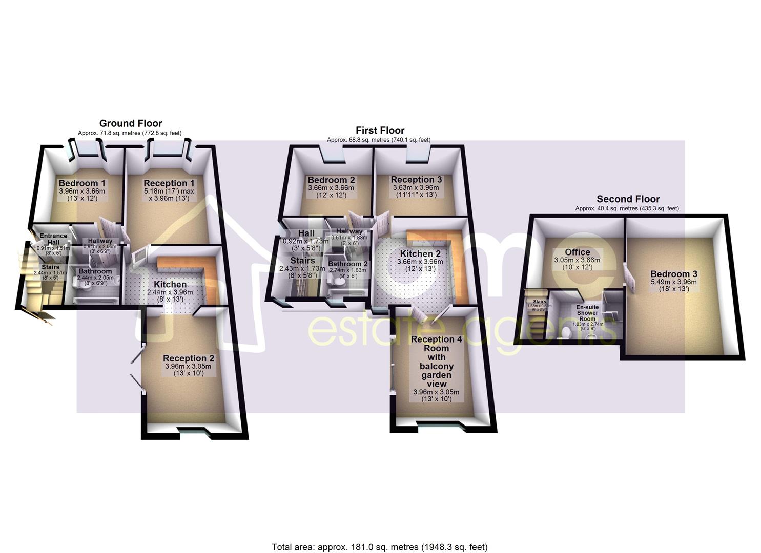 Home Estate Agents believe all the particulars given to be accurate. They have not tested or inspected any equipment, apparatus, fixtures or fittings and cannot, therefore, offer any proof or confirmation as to their condition or fitness for purpose thereof. The purchaser is advised to obtain the necessary verification from the solicitor or the surveyor. All measurements given are approximate and for guide purposes only and should not be relied upon as accurate for the purpose of buying fixtures, floor-coverings, etc. The buyer should satisfy him/her self of all measurements prior to purchase.