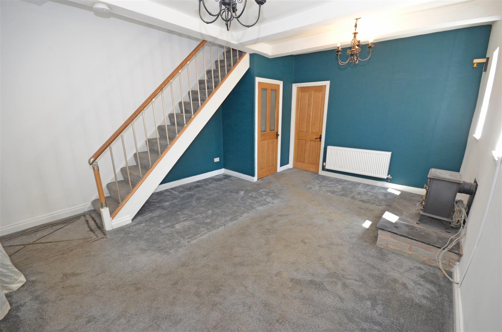 Superbly sized dining kitchen which runs from the front and back of the property, providing a lovely sized family room/kitchen/dining, comprising of a matching range of high gloss base and wall units incorporating a single drainer sink unit and work tops over, fitted four ring electric hob with extractor hood above and electric oven below, gas central heating boiler, Upvc double glazed window to the rear, Upvc double glazed door to the rear garden, plumbing and space for automatic washing machine, under stairs storage, stairs to the living room and radiator.