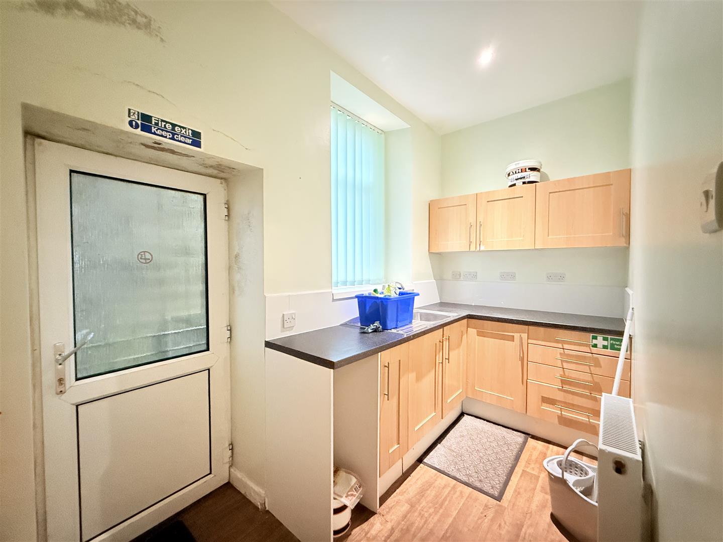 Window to rear, radiator, door to:
