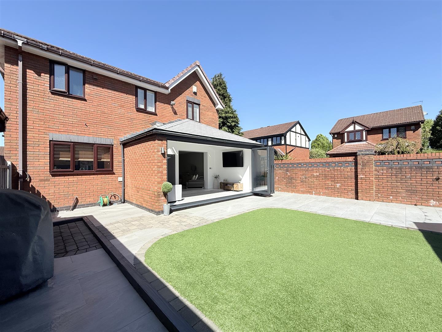 Lawned garden and driveway to the front leading to the garage. Enclosed landscaped south facing garden to the rear with paved patio area and artificial lawned section.
