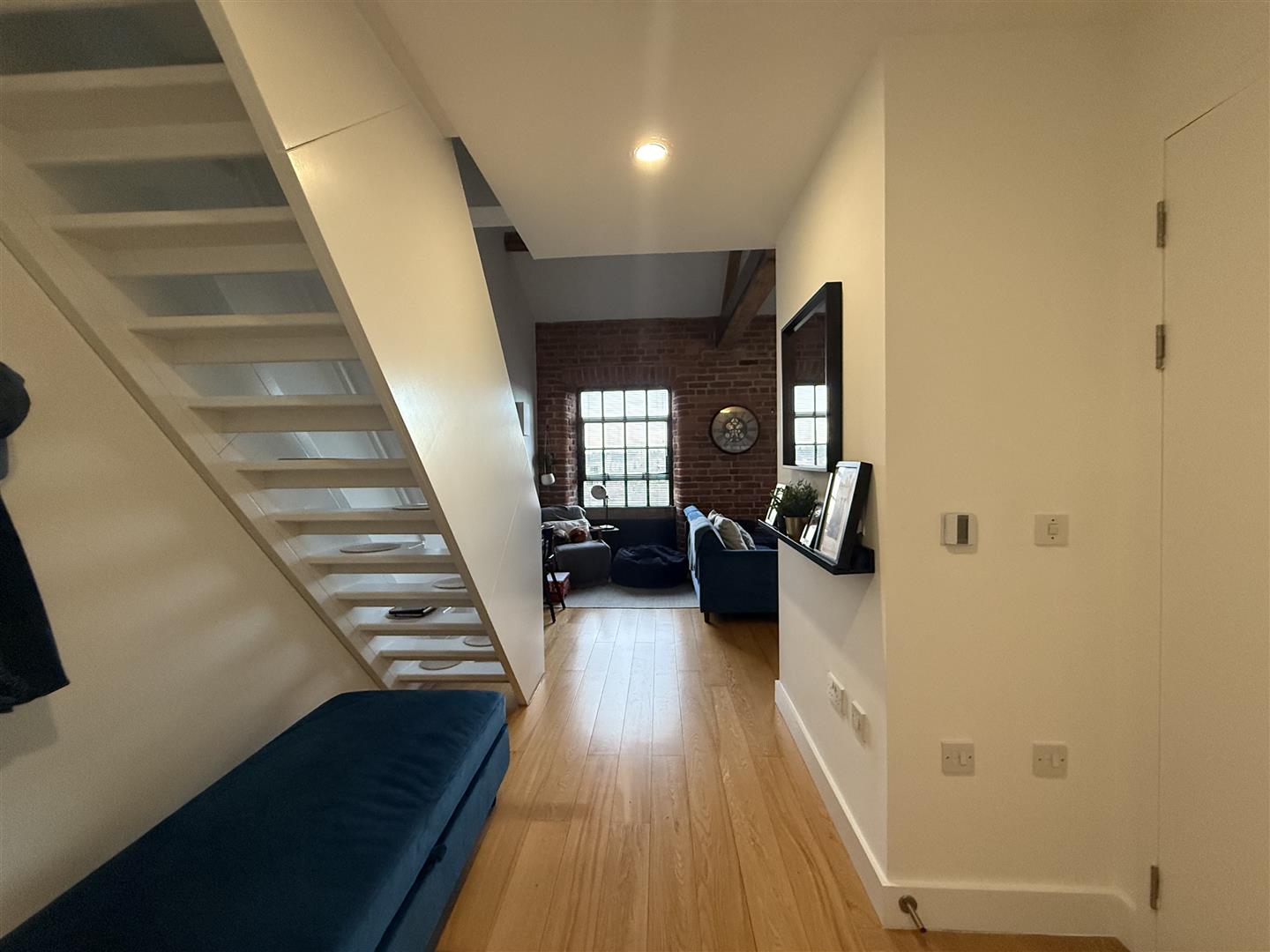Two double glazed windows over looking the front of the build. Open plan living room / kitchen space. Stairs leading up to bedroom