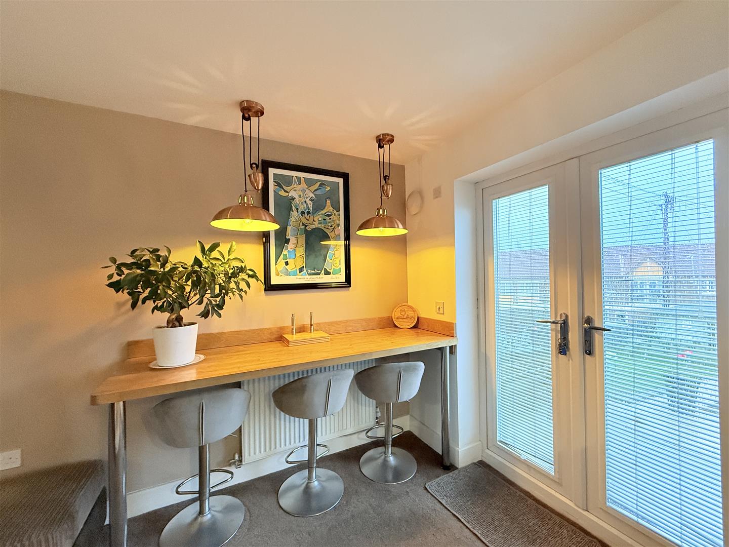 Bay window to front, two radiators, double door, door to: