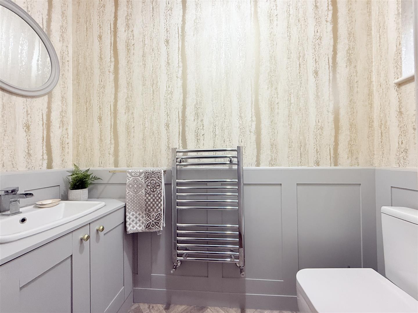 Window to front, heated towel rail.