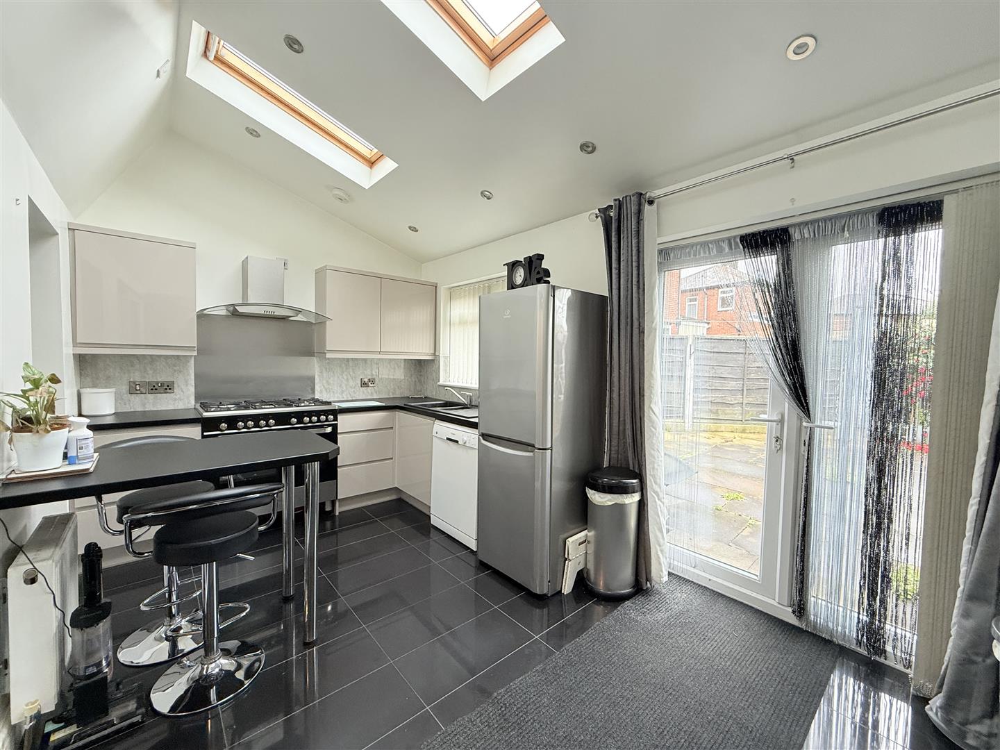 Two windows to side, heated towel rail, 3 pieces suite bath , toilet & sink